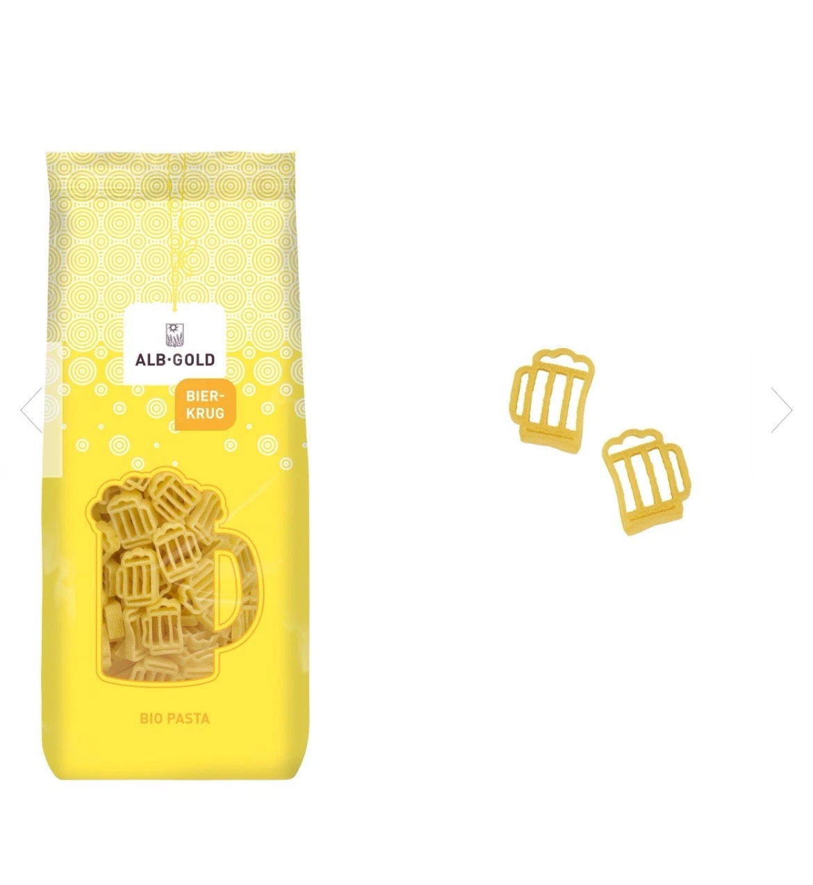 Mit unseren ALB-GOLD Bierkrugnudeln können Sie auch große Nudelfans überraschen. Die lustigen Motivnudeln in Form von Bierkrügen werden aus bestem Hartweizengrieß ohne Zugabe von Ei hergestellt und sind vegan. Diese einzigartigen Bierkrugnudeln werden bei Ihren Gästen auf Begeisterung stoßen! Sie eignen sich perfekt als Geschenkidee für Freunde und Familie. Probieren Sie diese Nudeln in Bierkrug-Form […]