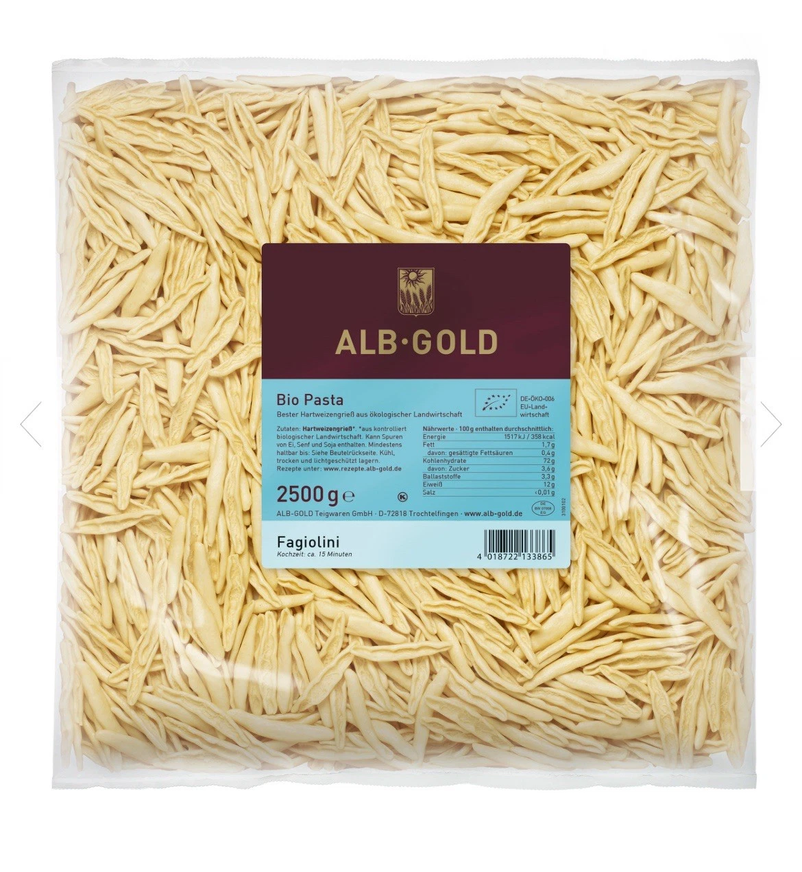 Die ALB-GOLD Fagiolini aus dem Bio-Pasta Sortiment erinnern, nicht nur der Übersetzung nach, sondern auch optisch, an „Böhnchen“. Diese italienische Spezialität muss man einfach gern haben.
