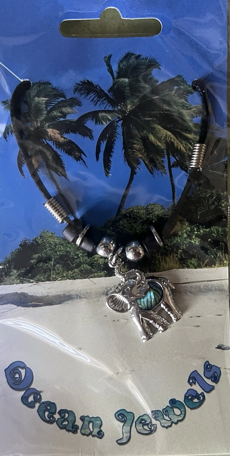 Jeder Elefantanhänger mit Kette ist auf einer hübschen Info-Karte mit deutschem und englischen Text zur Paua-Muschel befestigt.