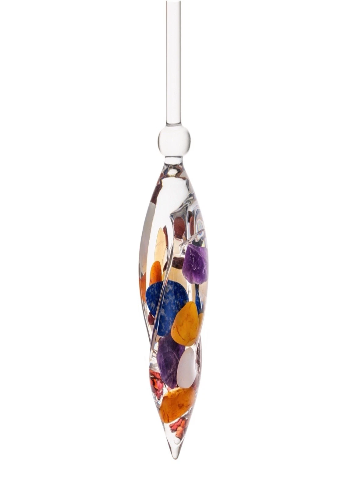Der Wasserstab „Jubilee Ayurveda “ ist mit Trommelsteinen von Lapis Vitalis in den Steinsorten Milchopal, Amethyst, Bergkristall, Lapislazuli, Granat, Karneol und Orangencalcit gefüllt – Lapis Vitalis inside garantiert hochwertige Therapiesteinqualität!