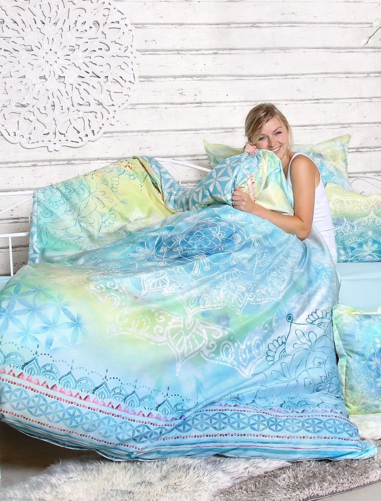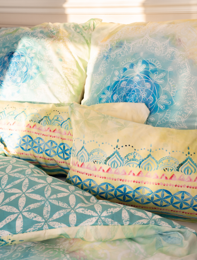 Ob Sie nun ein Langschläfer, ein Frühaufsteher, ein Träumer oder ein Farbliebhaber sind – diese Bettwäsche bringt einen Hauch von Regenbogen in jedes Schlafzimmer. Wunderbare Qualität, beeindruckende, handgemalte Motive und ein faszinierendes Farbenspiel machen die Bio-Baumwoll-Bettwäsche mit mikrofeinem Rosenquarz einzigartig. Das Zusammenspiel der Voraussetzungen fördert einen erholsamen Schlaf, während die Mandalas mit Fibonacci-Spirale für Ruhe und Harmonie sorgen. Die fröhliche Farbkombination erinnert Sie daran, jeden Tag mit einem Lächeln zu beginnen.