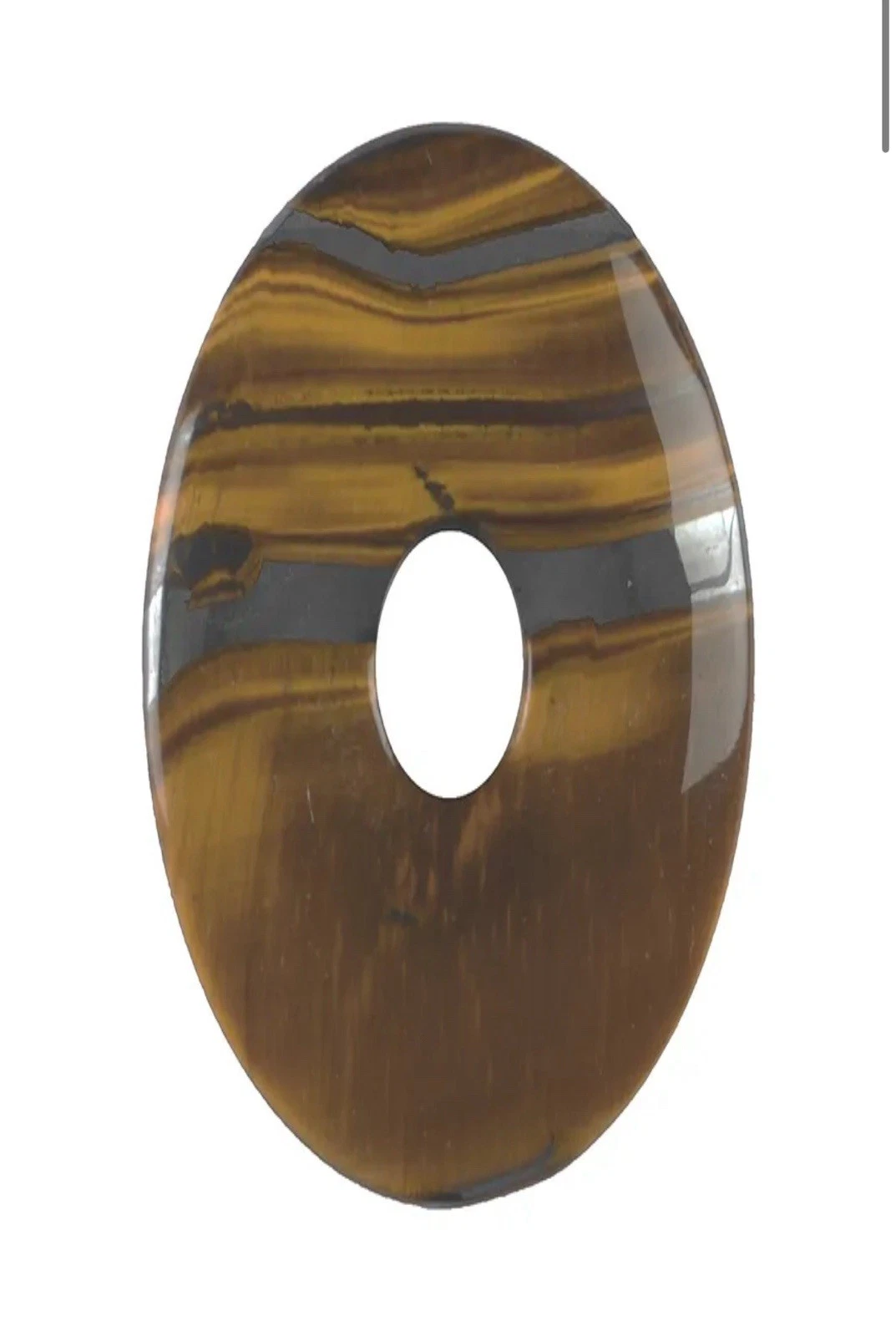 Jeder Edelstein-Donut aus afrikanischem Tigereisen ist ein Unikat, einzigartig in der Kombination der silbrigen Eisenbändern im braungoldenen Tigerauge.