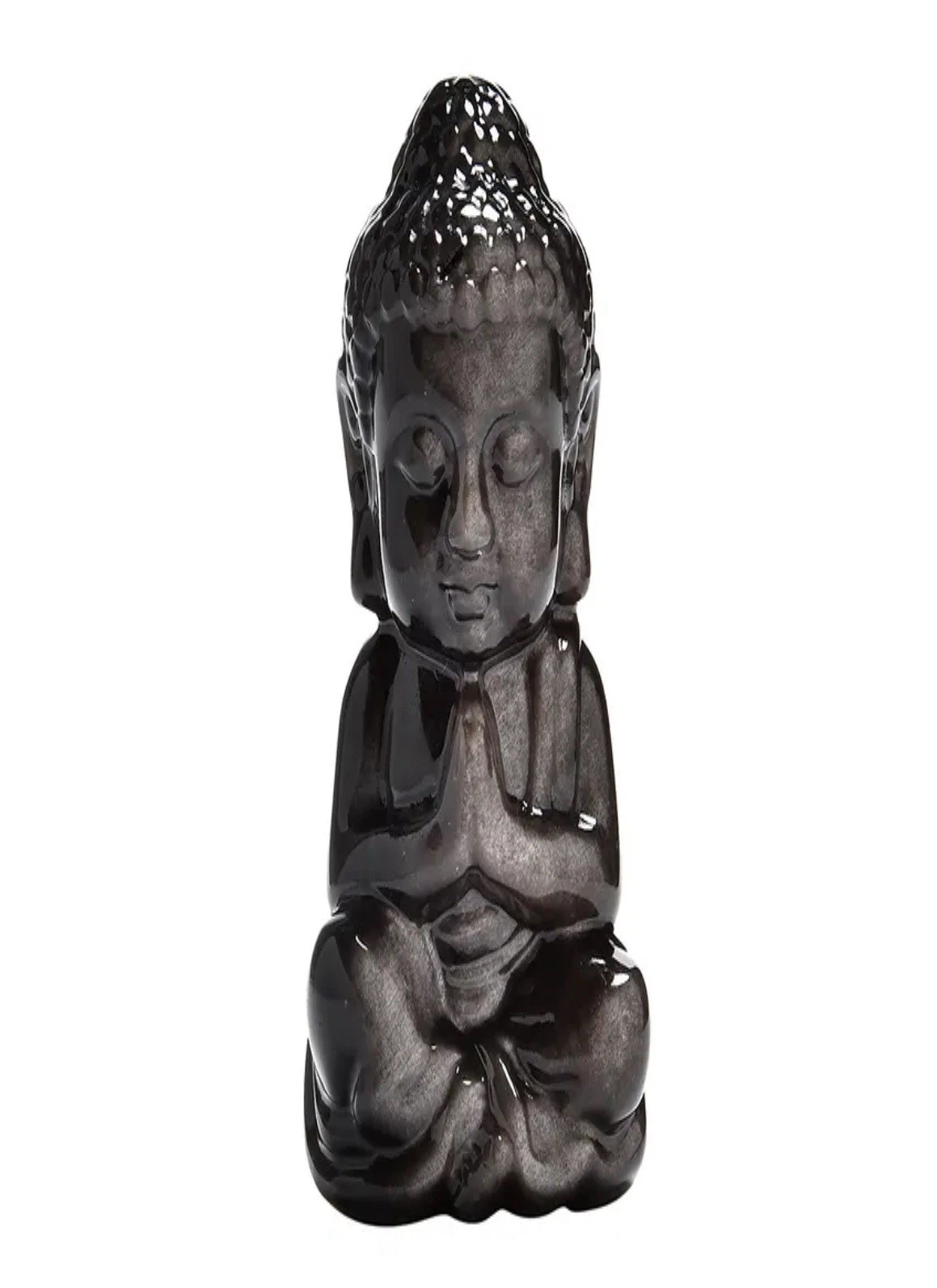 Gravur Buddha betend, Silberglanz-Obsidian, 6,0cm, poliert