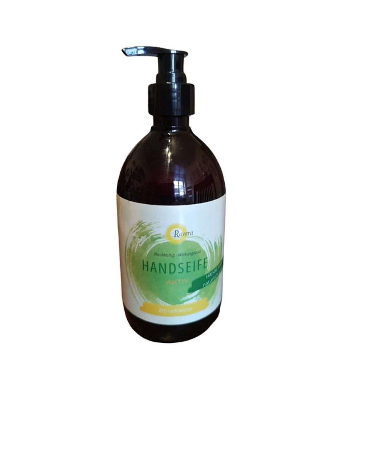 Handseife aktiv – 500 ml Natürliche Handseife mit hochwertigen Mikrokulturen Inhaltsstoffe Wasser, EM-Urlösung, UR-Meersalz, Bio-Rohrzucker, Bio-Kokostensid, Duftstoffe (Bio-ätherisches Bergamottenöl), Bio-Guakernmehl