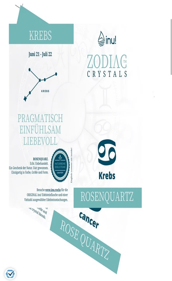 Astro-Engerie mit den galaktischen inu! Zodiac Crystals für Ihre inu!-Trinkflasche von VitaJuwel! Die Tierkreissteine in der inu! liefern die ultimative Sternenpower, um die persönlichen Stärken des Sternzeichen Krebs ans Licht zu bringen.