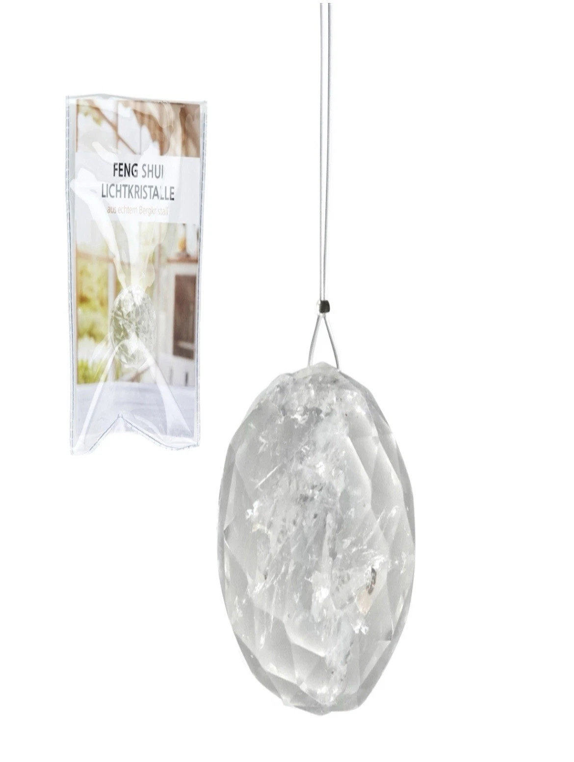 Lichtkristalle aus echtem Bergkristall – Feng Shui Hilfsmittel und Raumschmuck in einem! Bergkristall vergoldet als Symbol für Reinheit und Klarheit. Er soll uns helfen, zu einer geläuterten und freien Geisteshaltung zu gelangen. Bei der Verwendung des Bergkristalls als Fengshui-Hilfsmittel soll positives, belebendes Chi’i im Raum verteilt werden. Die Bergkristalle eignen sich daher ideal als Fensterschmuck. Die Sonnenkristalle (auch Sonnenfänger oder Regenbogenfänger genannt) sind ideal zum Leben der Raumatmosphäre. Jeder Lichtkristall wird mit transparenter Schnur und Erklärungskärtchen in einer Tasche geliefert. Durchmesser des Fensterkristalls ca. 28mm