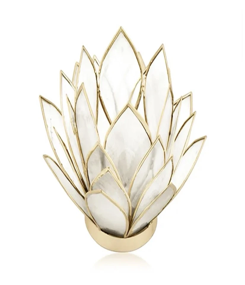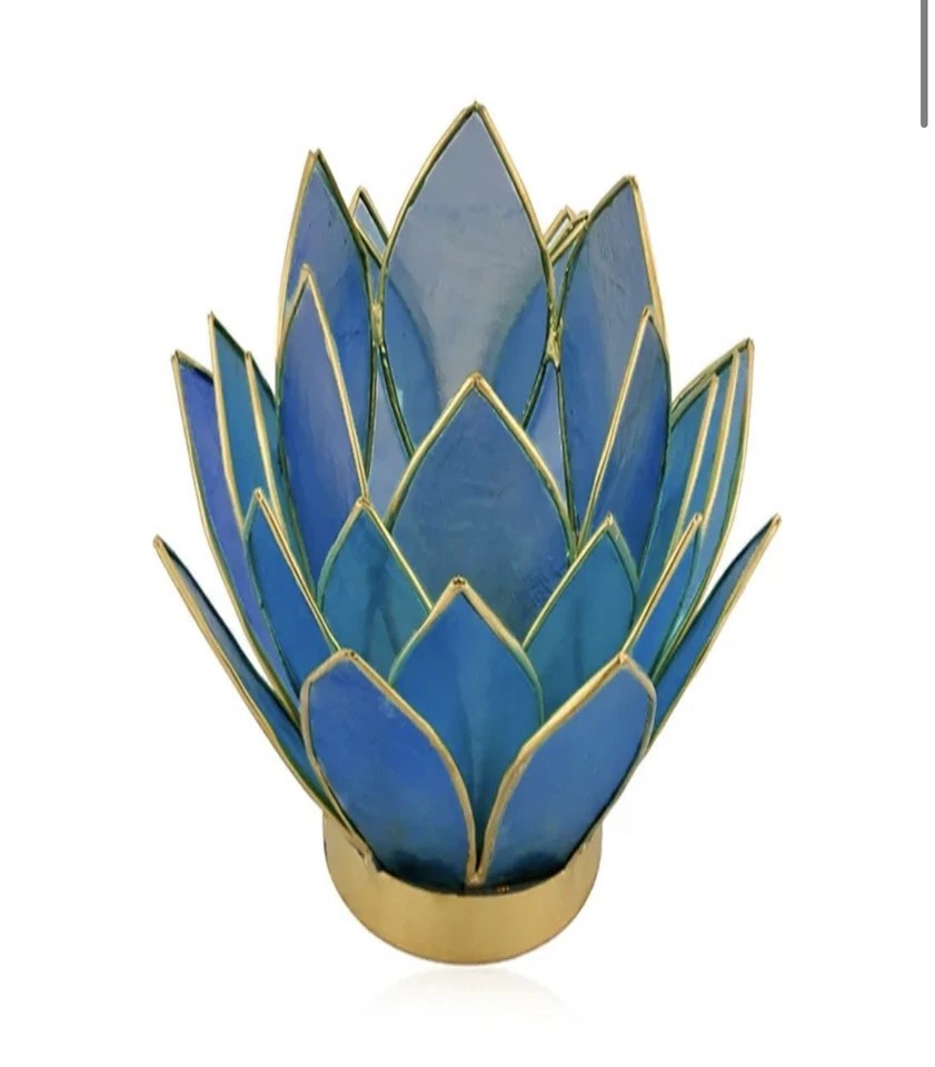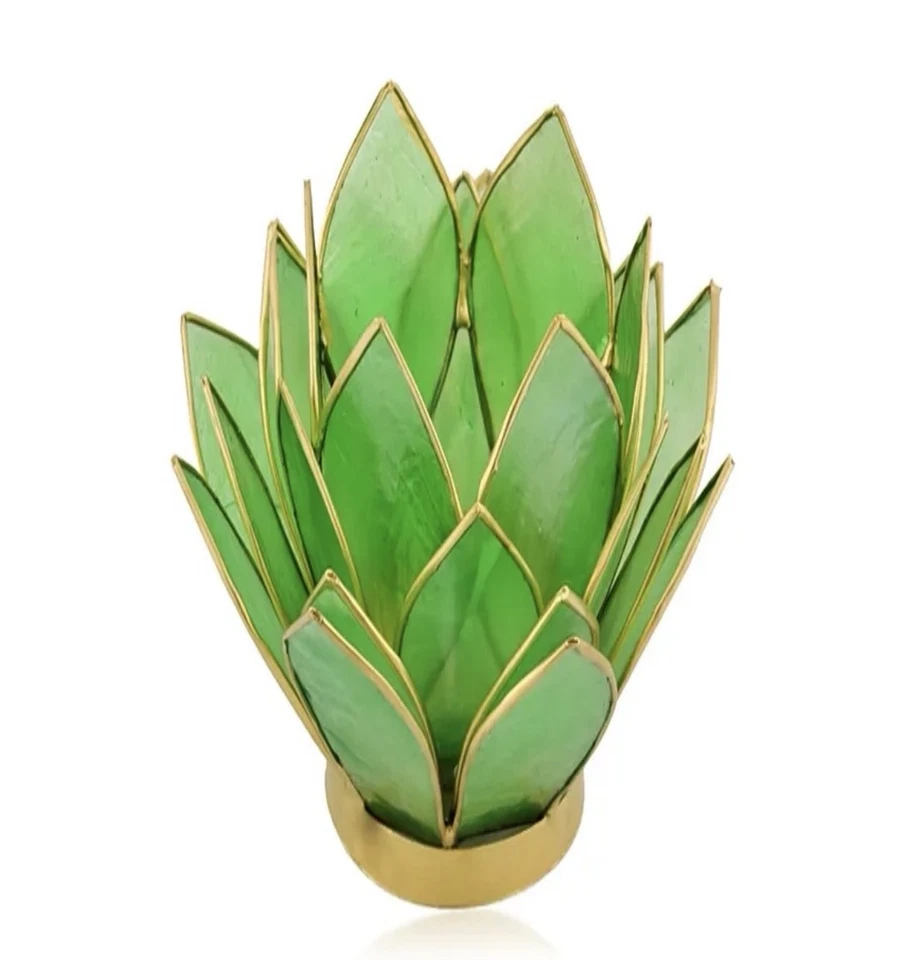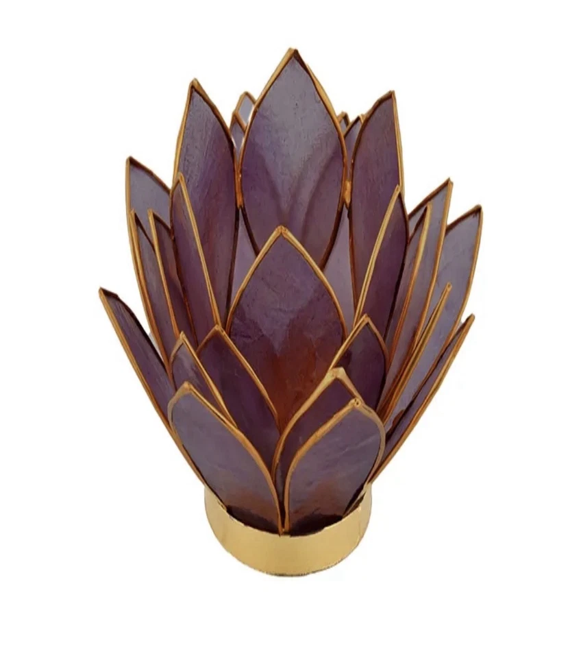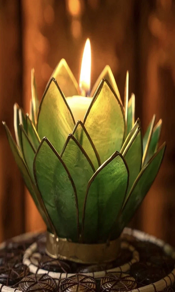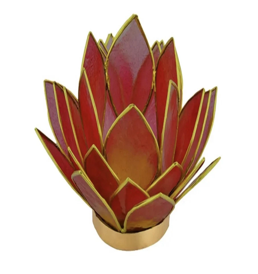 Die Bearbeitung der Capiz-Muschel ist sehr aufwändig, da zunächst die verschiedenen Schichten der Muschelschale sorgfältig getrennt und durch Einweichen formbar gemacht werden. Nach dem Formen, Zuschneiden und Trocknen werden die einzelnen Muschelstücke gefärbt und anschließend zu den schönen Teelichtern in Lotusblüten-Form zusammengestellt.