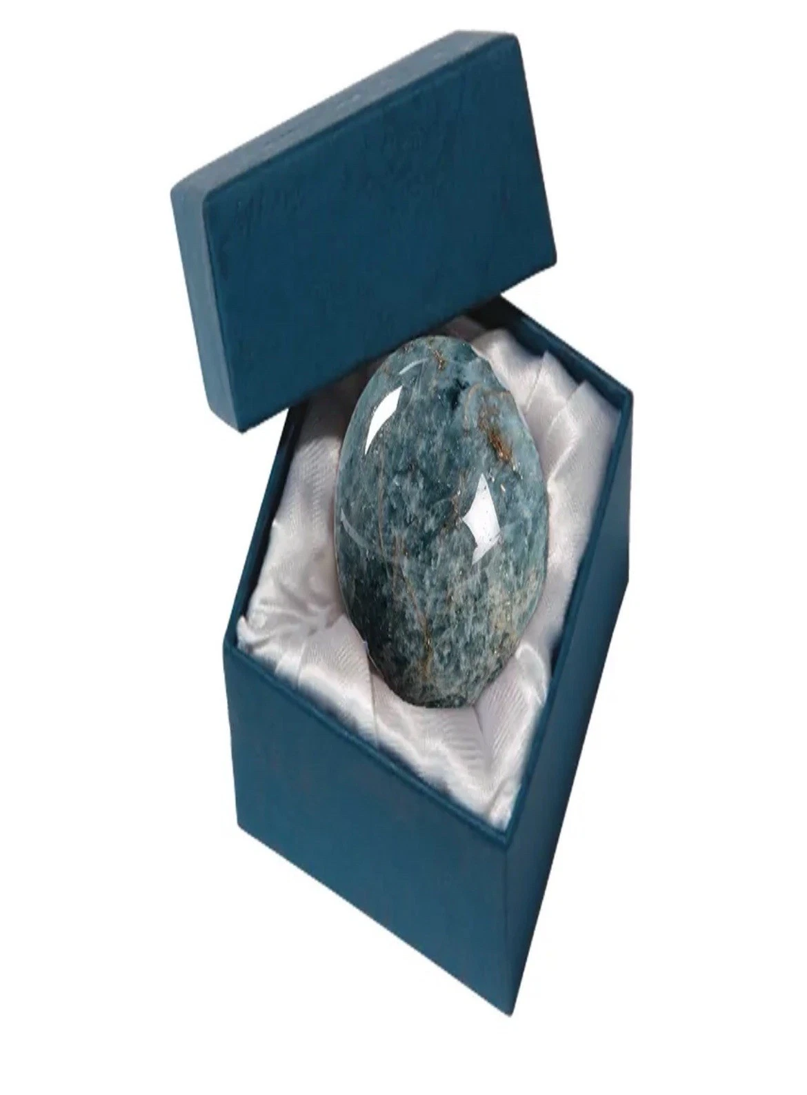 Diese schöne Edelsteinkugel aus blaugrünem Apatit (stab.) hat einen Durchmesser von 4cm und wird in der beliebten Lapis Vitalis-Geschenkbox geliefert.