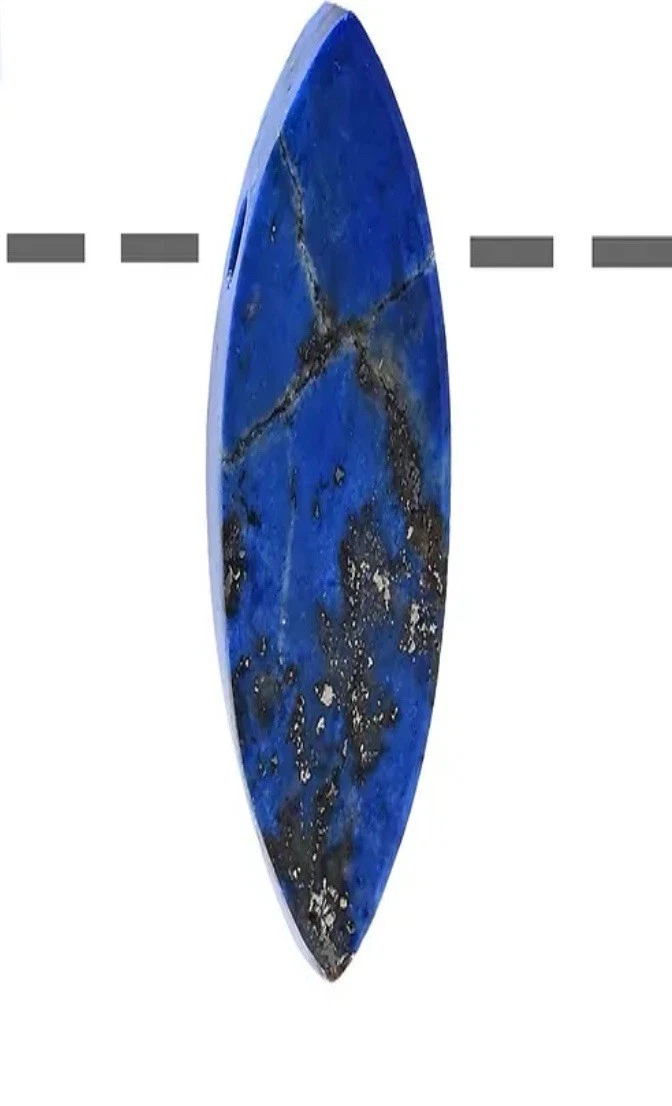 Der Anhänger in Navette-Form besticht durch seine harmonische Silhouette, die die Einschlüsse aus Pyrit und Calcit im Lapis Lazuli besonders zur Geltung bringt. Diese klassische Form sorgt für ein geschmackvolles, fließendes Design und hebt die natürlichen Maserungen des Steins auf elegante Weise hervor.