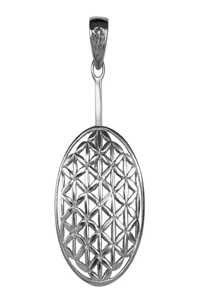 Der Donut-Halter mit der Lebensblume ist aus Silber 925.