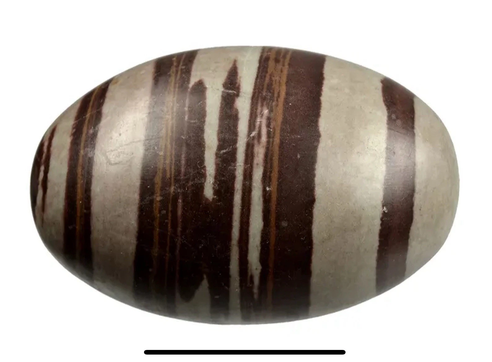 Shivalingam stammt aus Zentral-Indien und wurde ursprünglich als natürlich geformter Flusskiesel aus dem Narmada-Fluss geborgen. Inzwischen wird er aufgrund der hohen Nachfrage sorgfältig von Hand aus dem Original-Gestein herausgearbeitet.